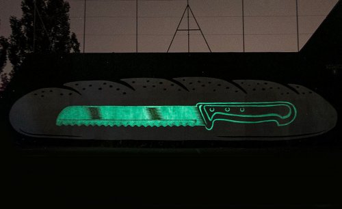 Испанский творческий дуэт под названием Reskate Studio использует фосфоресцирующую краску, с помощью которой придаёт дополнительный объём своим работам, скрывая искусные рисунки в изображениях, которые они создают.