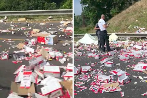 "Бутербродная" авария привела к крупному затору на трассе I-287 в южном направлении дороги в Пискатауэй (Piscataway). По крайней мере, рабочие не испытывали недостатка в еде во время расчистки места происшествия.