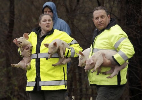 Полиция и сотрудники службы контроля над животными, прибывшие на место происшествия, сообщили, что некоторые из свинок были "серьёзно травмированы". Выжившие животные, которых разбросало вдоль проезжей части, были собраны сотрудниками. Будем надеяться, многие из поросят избежали печальной участи попасть на обеденный стол.