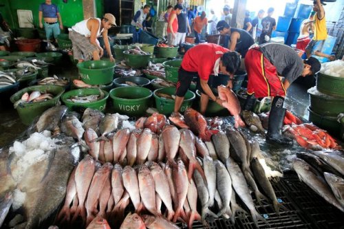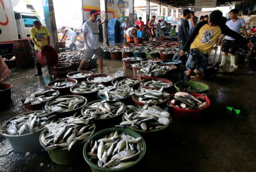 Продавцы раскладывают рыбу на продажу на местном рынке живой продукции в порту Навотас (Navotas), пригороде Манилы, Филиппины, 30 декабря 2016 г. (фото: Romeo Ranoco/Reuters)
