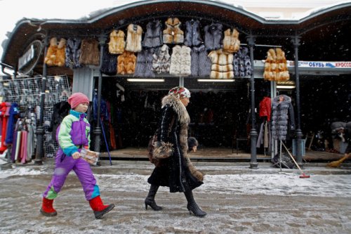 Люди проходят мимо магазина в Апраскином Дворе, рынке, существующем с XVIII века, в центре Санкт-Петербурга, 20 февраля 2013 г. (фото: Alexander Demianchuk/Reuters)