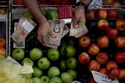 Кассир подсчитывает венесуэльские боливары на рынке в центре Каракаса, Венесуэла, 7 декабря 2016 г. (фото: Ueslei Marcelino/Reuters)
