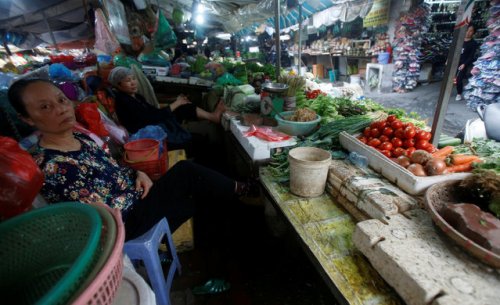 Продавцы овощей в ожидании покупателей на рынке в Ханое, Вьетнам, 5 декабря 2016 г. (фото: Reuters/Kham)