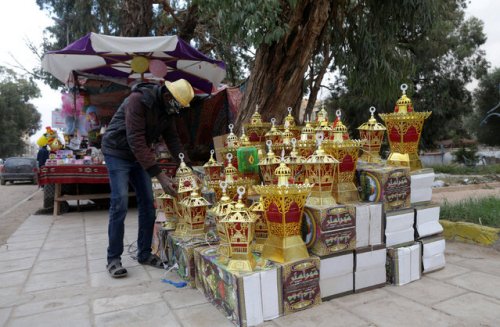 Продавец раскладывает свою продукцию накануне торжеств по случаю религиозного праздника Мавлид (Mawlid al-Nabi), дня рождения пророка Мухаммеда, в Бенгази (Benghazi), Ливия, 8 декабря 2016 г. (фото: Esam Omran Al-Fetori/Reuters)