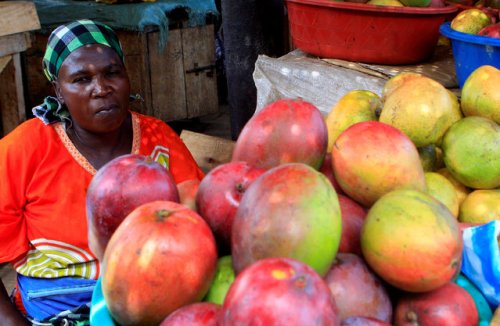 Женщина продаёт фрукты на рынке в Касесе (Kasese), родном городе короля Рвензуруру (Rwenzururu) Чарльза Уэсли Мумбере (Charles Wesley Mumbere), после того, как в город Касесе в восточной части Уганды, граничащий с Демократической республикой Конго, вернулось спокойствие через неделю после перестрелки между силовиками Уганды и королевскими гвардейцами, 1 декабря 2016 г. (фото: James Akena/Reuters)