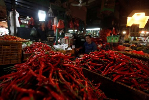 Перец чили, разложенный на продажу на обычном рынке в Джакарте, Индонезия, 16 декабря 2016 г. (фото: Fatima El-Kareem/Reuters)