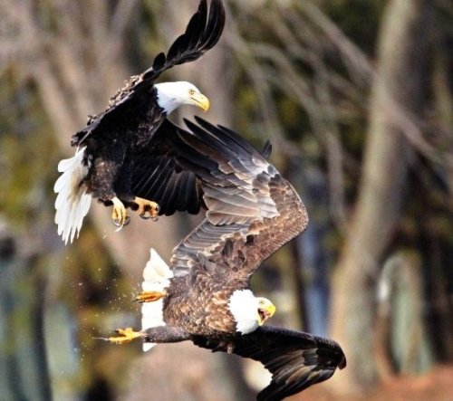8. Для защиты своей территории и привлечения внимания партнёров для спаривания, белоголовый орлан устраивает зрелищное воздушное представление, включающее в себя смертельные, стремительные пикирования и воздушные бои, при которых самец с самкой сцепляются когтями и парашютом падают вниз, вертясь по спирали.