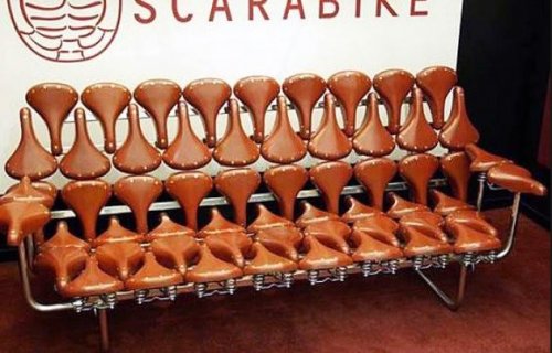 Не уверены, где можно достать столько велосипедных сёдел, но это выглядит довольно необычно и наверняка идеально после многих лет занятий велосипедным спортом.