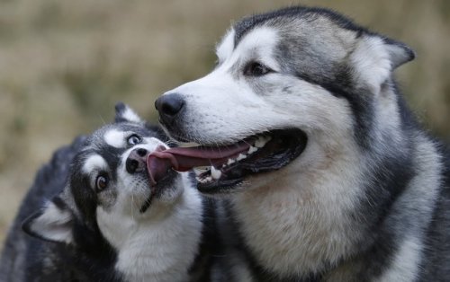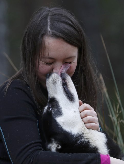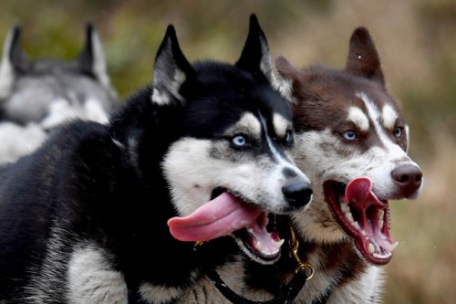 Собаки играют друг с другом во время подготовки к Авиморскому слету. Тренировки происходят в Фешибридже, Шотландия, 24 января 2017.
