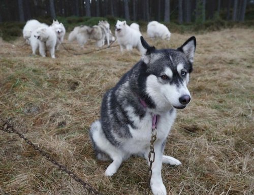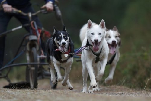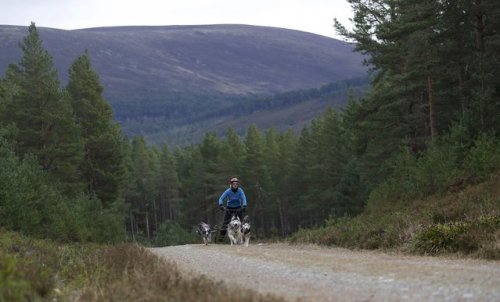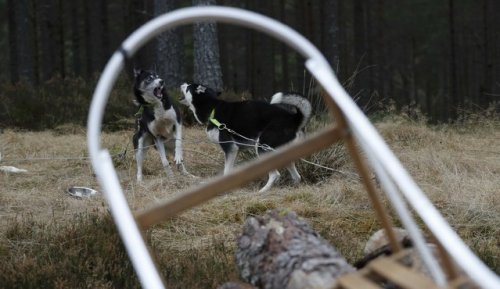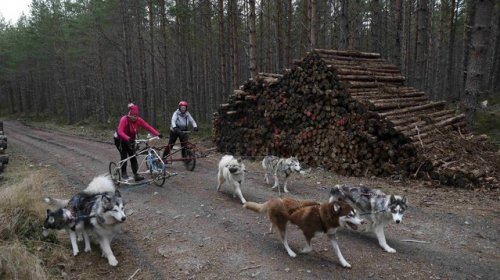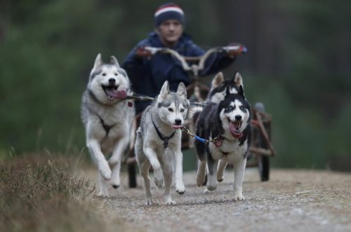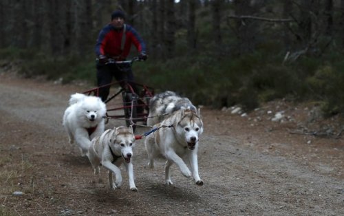 Гонщики и их собаки участвуют в подготовительном заезде по лесу перед ежегодным Авиморским слетом, 24 января 2017 в Фешибридже, Шотландия. В этом году это будет уже 34-ая подобная гонка, и ее организатором выступает Клуб сибирских хаски Великобритании. Состязание традиционно проводится на озере Морлих.