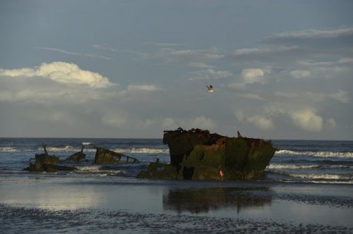18. Чайка пролетает над затонувшим кораблем в районе пляжа Балтрей, Ирландия, 15 декабря 2016 года. Фото: Clodagh Kilcoyne/Reuters