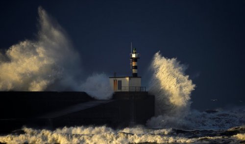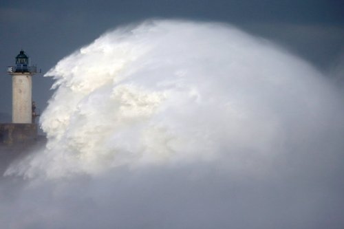 1. Волны разбиваются о побережье, на котором возвышается одинокий маяк. Ветер здесь бывает очень суровым, и иногда воду прибивает к берегам на скорости в 120 км в час. Северная Франция, 20 ноября 2016 года. Фото: Pascal Rossignol/Reuters
