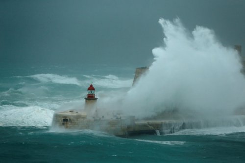 19. Мощные волны разбиваются об волнорез форта Рикасоли у входа в бухту Валлетта Гранд Харбор, Мальта, 17 декабря 2016 года. Фото: Darrin Zammit Lupi/Reuters
