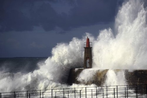15. Огромные волны разбиваются об волнорез на севере Испании, Сан Эстебан де Правия, 18 ноября 2016 года. Фото: Eloy Alonso/Reuters