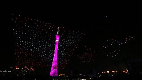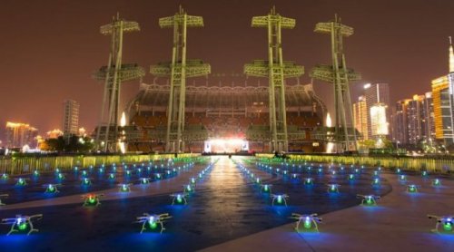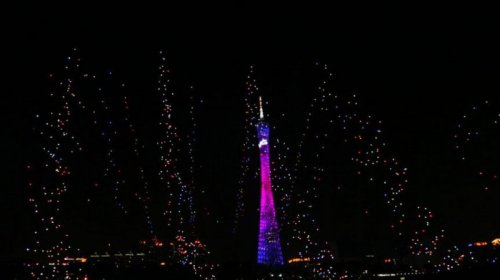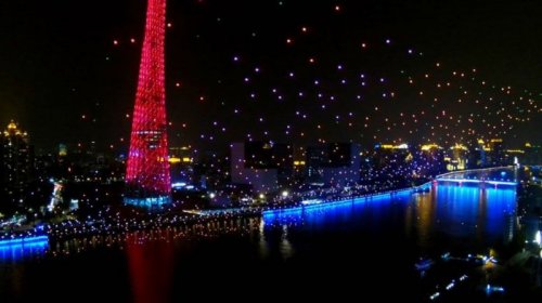 Недавно, во время празднования Китайского Нового года в Гуанчжоу, компания Intel устроила в ночном небе световое шоу с участием уже тысячи дронов. Представление длилось около 15 минут, а общая площадь светового изображения составила 120 х 280 метров.