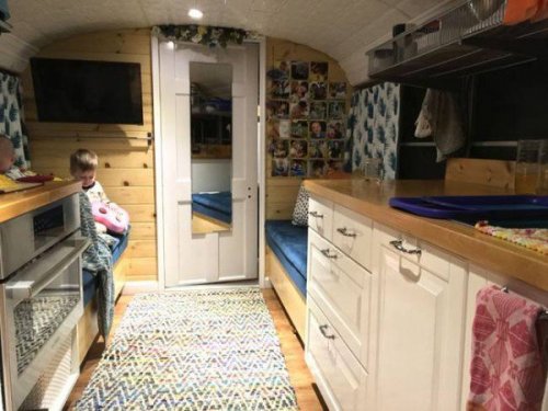 Несмотря на то, что у Салливанов не было никакого опыта в строительстве или ремонте, Брайан и Старла потратили целый год на превращение автобуса, который они прозвали Старая Берта (Old Bertha), в подходящий для них дом. Это было непросто, но им удалось обустроить здесь все необходимые удобства и установить всю нужную мебель. Внутренняя планировка была продумана так, чтобы получить от ограниченного пространства максимум пользы, и каким-то образом им даже удалось выделить место для полноценной спальни с двухместной кроватью, кухни с духовкой, стиральной машины, туалета и даже для душевой. И самое замечательное – в месяц семья тратит не больше 500 долларов, что в три раза меньше, чем за аренду чужой квартиры.