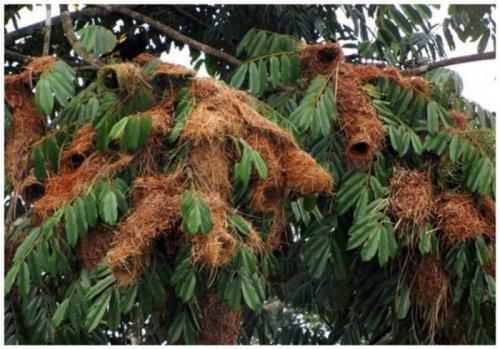 Гнёзда касиков и оропендол напоминают собой целые города на деревьях.