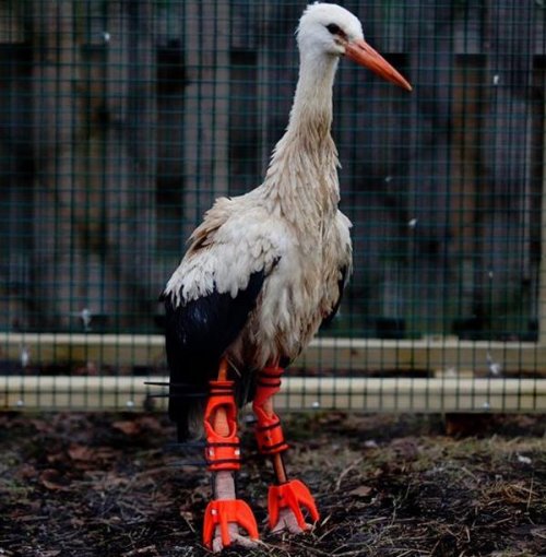 7. Раненый аист ходит с помощью «печатных» скоб на лапах