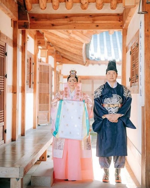 В Южной Корее пары носят традиционные наряды, называемые "ханбок" (hanbok). Ханбок невесты включает в себя юбку с большим запáхом и короткий жакет с длинными рукавами (под названием "чима-джеогори" (chima-jeogori)). Ханбок жениха состоит из короткого жакета "турумаги" (durumagi) и вместительных штанов "баджи" (baji).