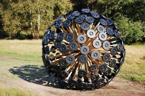 Приводимая в движение ветром сфера из бамбука и биоразлагаемого пластика, предназначенная для очистки от наземных мин