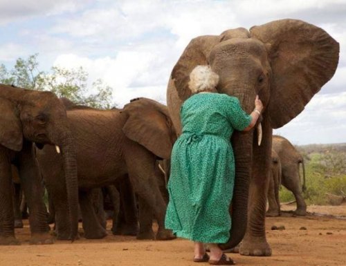 Дафна Шелдрик (Daphne Sheldrick) посвятила свою жизнь воспитанию осиротевших слонов. Как только они достигают зрелости, их вывозят на охраняемые территории и объединяют с другими сиротами. Когда приходит Дафна, слоны собираются вокруг неё, чтобы обняться.