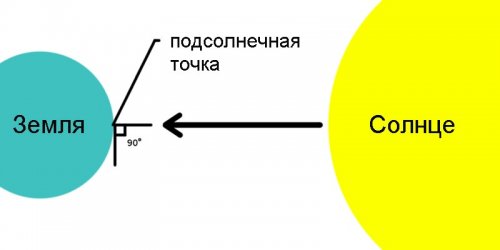 По мере того как Земля вращается, подсолнечная точка движется на запад, огибая земной шар за один день. Она также движется на север и юг между Тропиком Рака (или Северным тропиком) и Тропиком Козерога. Когда подсолнечная точка находится в Тропике Козерога — это день зимнего солнцестояния, а когда она находится в Тропике Рака — это день летнего солнцестояния. Точно также, в марте и сентябре, весеннее и осеннее равноденствие соответственно происходит тогда, когда подсолнечная точка пересекает экватор.