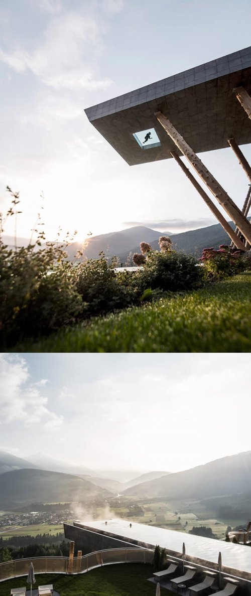 3. Итальянская архитектурная компания NOA недавно завершила строительство привлекательного бассейна со стеклянным дном для отеля Hubertus, курорта для лыжников и любителей пешего туризма в итальянской провинции Южный Тироль. Потрясающий 25-метровый бассейн является частью новой пристройки отеля, расположенной у подножия горы Кронплатц (Kronplatz), с впечатляющим видом на окружающие Доломитовые Альпы.