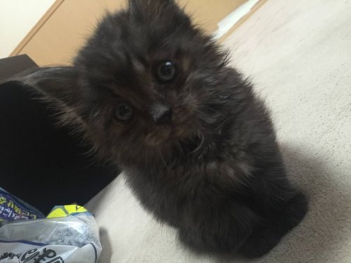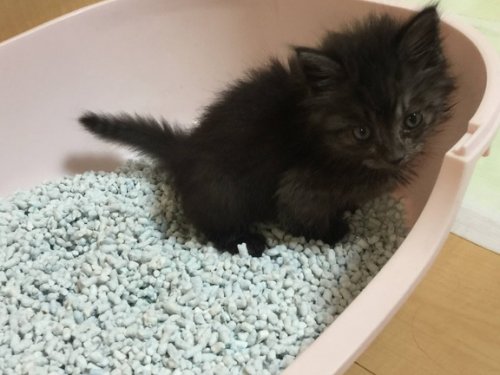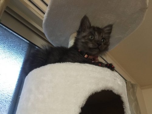 Через пару недель котёнок удвоил свой вес, хорошо питался и умело пользовался кошачьим лотком. Когда малыша обнаружили, он весил около 200 граммов, а в пять месяцев весы уже показывали 4 килограмма, и он с каждым днём крепчал. Котёнок стал более игривым и "разговорчивым", всё чаще мурлыкая со своими хозяевами.