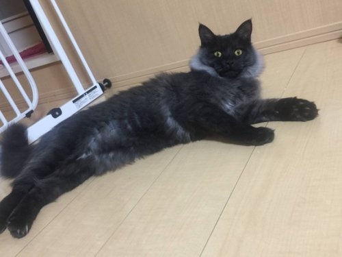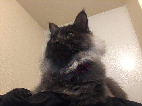 Спустя время его хвост распушился, на ушках появились пучки шерсти, и котейка начал преображаться. К восьми месяцам его шерсть неожиданно стала длиннее и более пушистой, а шея покрылась слоем белёсого подшёрстка, прямо как у льва.