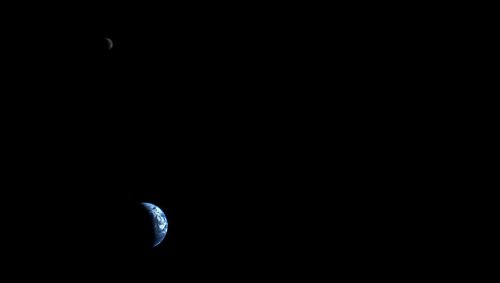 2. Это изображение Земли и Луны сделано 3 октября 2007 года с помощью камеры HiRISE, установленной на другой межпланетной автоматической станции NASA - Mars Reconnaissance Orbiter. Как вы уже догадались, этот космический аппарат вращается вокруг красной планеты, но это не мешает нам получать снимки Земли и ее спутника с расстояния целых 142 миллионов километров. На этом кадре видны лишь половинки дисков нашей планеты и Луны. Чтобы получить с марсианской станции изображение полностью освещенных дисков, нужно чтобы система Земля-Луна находилась с другой стороны от Солнца. Но тогда снимок был бы сделан с более дальнего расстояния и не был бы таким детальным.