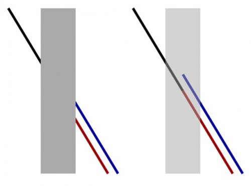 Перед вами классическая оптическая иллюзия, получившая свое название в честь немецкого физика И. К. Поггендорфа (Poggendorf). Разгадка кроется в расположении черной линии. Если посмотреть на левую часть картинки, покажется, что синяя линия должна быть продолжением черной, но на правой части рисунка видно, что ее завершает именно красная полоса.