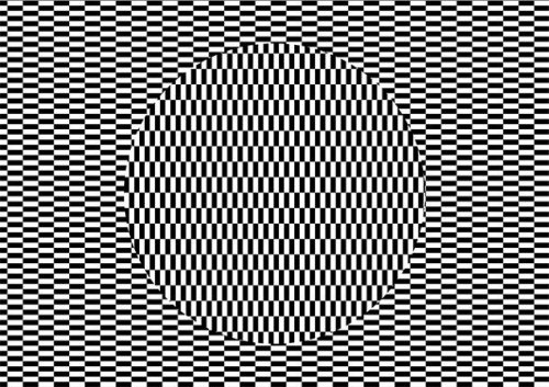 Такое ощущение, что по поверхности поля дует ветер… Но нет, это точно не гифка. Хотя в это сложно поверить, если рассматривать изображение, перемещая взгляд с одной точки на другую. Если же смотреть строго по центру, картинка должна постепенно застыть или хотя бы замедлиться.