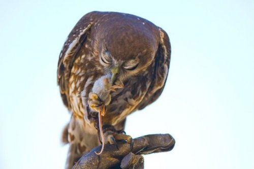 Совы – очень умные и общительные животные, если они не запуганы и не в состоянии стресса. В Японии даже существуют целые кафе и рестораны, где вы можете не только перекусить, но и насладиться компанией этих величественных птиц. Однако держать дома таких животных разрешено не во всех странах.