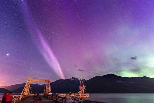Познакомьтесь со Стивом (Steve), потоком горячего быстро движущегося газа, сияющего над парком штата Порто Ков в Британской Колумбии (Porteau Cove Provincial Park, British Columbia), Канада, май 2016 года. Фото: Vanexus Photography