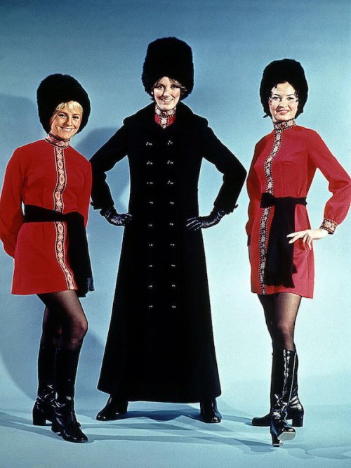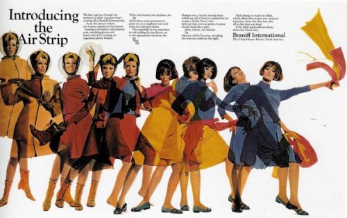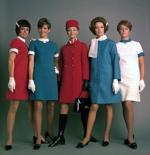Мода 1960-ых от бортпроводниц авиакомпании Air Canada. Дизайнер не известен.