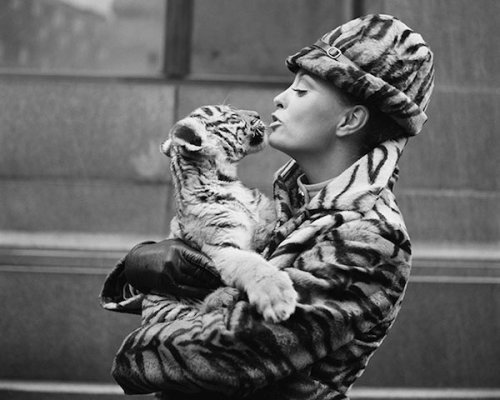 Более тысячи бортпроводников авиакомпании National Airlines носили эту роскошную униформу, имитирующую тигриную шерсть, в 1971 году. Стюардесса Синтия Робертсон (Cynthia Robertson) демонстрирует образ, держа в руках 8-месячного бенгальского тигрёнка по кличке Индира (Indira).