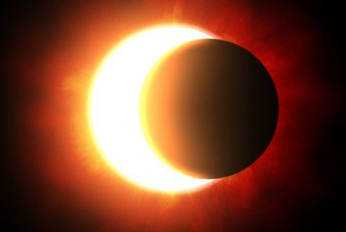 Полное затмение случается, когда Луна полностью перекрывает Солнце.