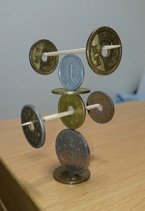 Twitter-пользователь под ником @thumb_tani (Tanu) радует своих поклонников невероятными конструкциями из монет, бросающими вызов законам физики, с тех пор как неожиданно открыл для себя это увлечение.