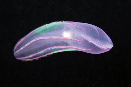 Медуза Cyanea поедает гребневика Beroe cucmis