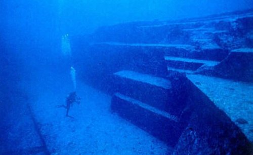 Большие каменные образования находятся под водой недалеко от острова Йонагуни (Yonaguni Jima). Внешне они напоминают египетские или ацтекские пирамиды и находятся под водой около 2000 лет. Сначала полагали, что обнаруженные в 1986 году местным дайвером образования, сформировались естественным образом, хотя это странно при наличии углов в 90 °.