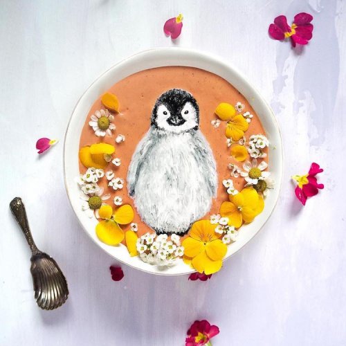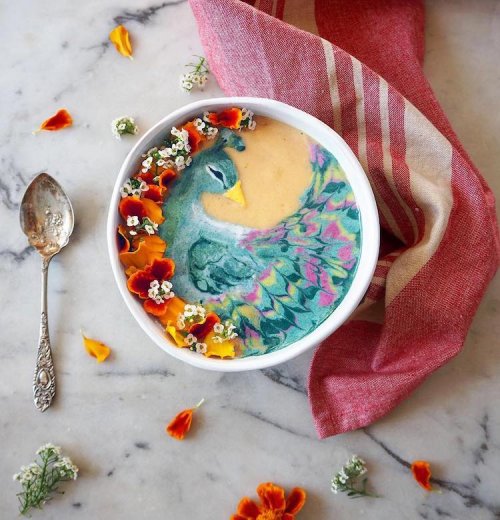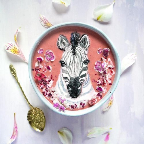 Съедобные произведения Хейзел Закария (Hazel Zakariya), которые она создает в чашках смузи, не могут сделать их вкуснее, но, определенно, делают красивее. Используя только деревянные зубочистки и нож, она кропотливо рисует картины на фруктовой или овощной основе, используя «съедобные» краски, изготовленные из таких ингредиентов, как куркума, синяя матча, молоко, сливки и мотыльковый горошек (анчан). Результаты настолько впечатляют, что сложно поверить, что Закария не профессиональный художник по оформлению еды, а рыночный аналитик, который любит проводить свободное время, дав волю своему художественному началу.