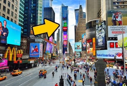 Здание Таймс-сквер 1 (One Times Square) пустует уже с 1992 года. Именно тогда и обанкротилась владевшая строением корпорация. Небоскреб был продан рекламной компании, которая решила оставить эту недвижимость пустовать и дальше. В итоге предприимчивая фирма превратила Таймс-сквер 1 в гигантский рекламный щит. Нынешний владелец небоскреба каждый год получает свыше 23 миллионов долларов за размещение рекламных баннеров на фасаде этой высотки.
