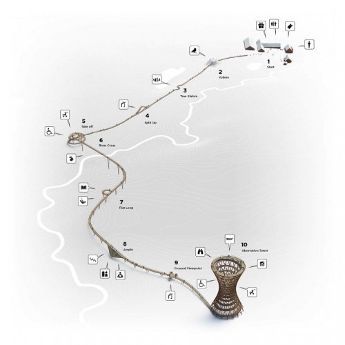 Оно состоит из внутреннего 600-метрового пандуса, по которому посетители смогут подняться от поверхности земли до уровня верхушек деревьев, на всём протяжении имея 360-градусный обзор холмистого ландшафта, характерного для этого региона.