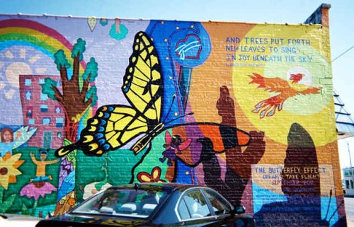 Через какое-то время в Джоплине на торце здания появилась огромная роспись в память о том, какую опасную стихию пережил целый город. Стену дома украсили не только живописные пейзажи, но и изображения таинственных людей-бабочек. Художественный руководитель проекта, Дэйв Лоуэнштейн (Dave Lowenstein), попытался отметить, что у бабочек есть много символических значений, но большая часть жителей все же склонна видеть в этих картинах тех самых крылатых защитников, описанных в городской легенде.