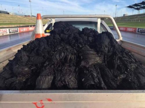 Это шины, извлеченные из асфальта после скоростных гонок.