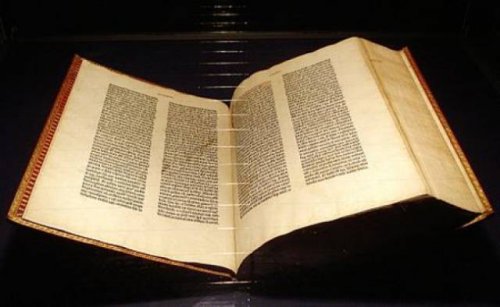 Эта книга, известная также как 42-строчная Библия, символизирует начало книгопечатания в Европе. Йоханнес Гутенберг (Johannes Gutenberg) выпустил первое издание в начале 1450-х годов. Историки утверждают, что в общей сложности было 185 экземпляров Библии: 150 бумажных и 35 напечатанных на пергаменте. Сегодня осталось всего 48 экземпляров, и большинство из них неполные.
