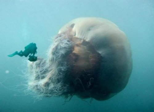 Это огромное животное – самый крупный в мире вид медузы (из всех известных науке). Щупальца самой большой особи волосистой цианеи составляли целых 37 метров! Эти существа любят холодную воду, так что столкнуться с ними можно разве что при вашем же большом желании во время глубоководного погружения где-то вдали от берега. Вопреки грозному виду, жало у этой медузы не такое и опасное, хотя ее укус все же может вызвать покраснение и болевые ощущения. Чаще всего отдыхающие обжигаются, когда к берегу прибивает кусочки уже мертвых волосистых цианей.