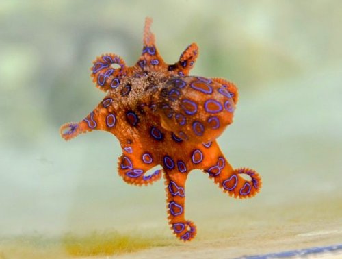 Этих осьминогов сложно перепутать с какими-то другими родственными видами благодаря их привлекательной окраске. Но знали ли вы, что синекольчатые осьминоги – заодно и одни из самых ядовитых в мире животных? Яркое головоногое предпочитает прибрежные воды Тихого океана в районе Австралии и Японии, и нередко сталкивается с людьми. Если на синекольчатого осьминога наступить или как-то его спровоцировать, он обязательно вас укусит. Яд этого морского обитателя может убить взрослого человека за считанные минуты, а противоядия пока что не существует, так что смотрите под ноги…