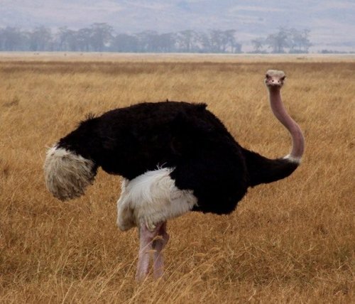 Африканский страус – самая крупная из всех современных птиц в мире. Диковинное пернатое способно разогнаться до внушительной скорости в 72,5 километра в час, а если ему покажется, что настало время защищаться, страус даст неслабый отпор. Удары этой птицы такие сильные, что она даже может убить льва или другого крупного хищника. Все известные случаи нападения на людей всегда происходили по вине самих же хомо сапиенс. Не провоцируйте диких зверей. Даже птиц.