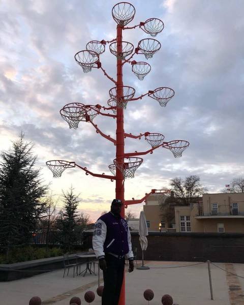 41. Легендарный американский баскетболист Шакил О’Нил (Shaquille Rashaun O'Neal) собрал целую коллекцию из обручей, которые он лично ломал во время матчей. Это настоящее трофейное дерево.